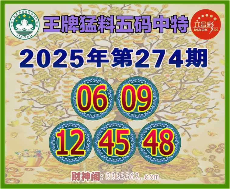 274期:《王牌猛料》 💎五码中特💎【06.09.12.45.48】开:00准
