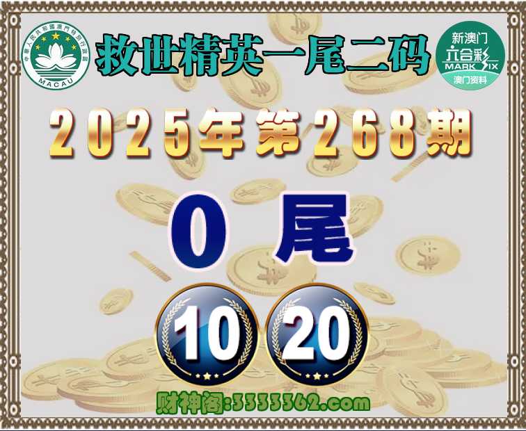 268期:【救世精英】  ♣️一尾二码 ♣️【0尾主:10.20】开:10