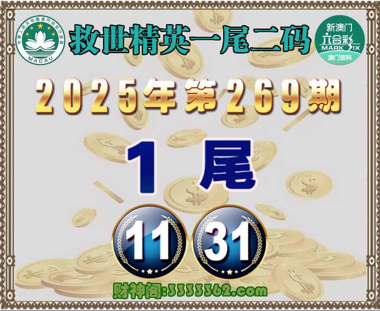269期:【救世精英】  ♣️一尾二码 ♣️【1尾主:11.31】开:31