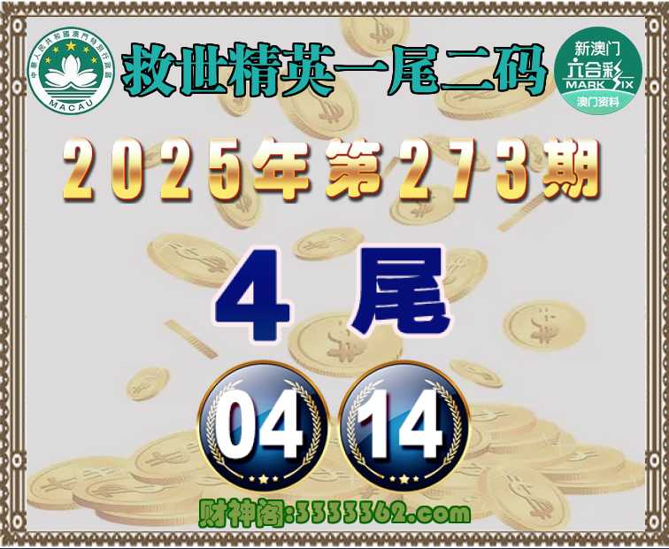 273期:【救世精英】  ♣️一尾二码 ♣️【4尾主:04.14】开:04