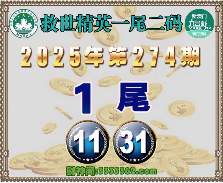274期:【救世精英】  ♣️一尾二码 ♣️【1尾主:11.31】开:00准