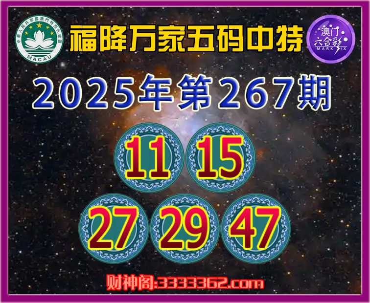 267期:【福降万家】 😜五码中特😜【11.15.27.29.47】开:29