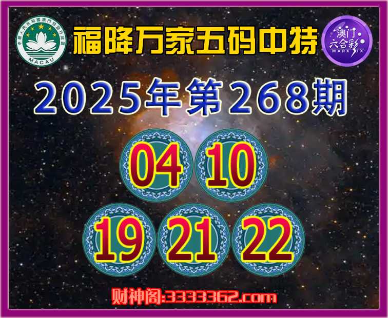 268期:【福降万家】 😜五码中特😜【04.10.19.21.22】开:10