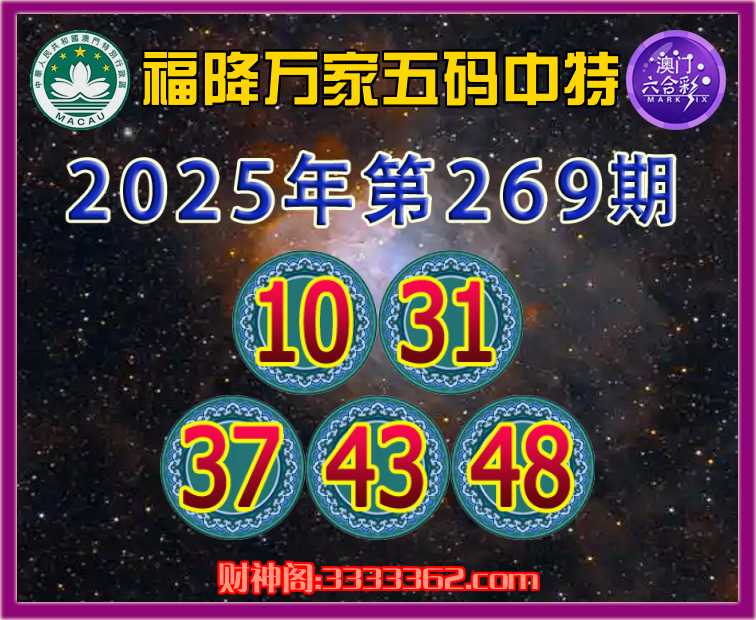 269期:【福降万家】 😜五码中特😜【10.31.37.43.48】开:31