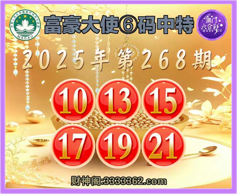 268期:『富豪大使』 ✂️⑥码中特✂️【10.13.15.17.19.21】开:10