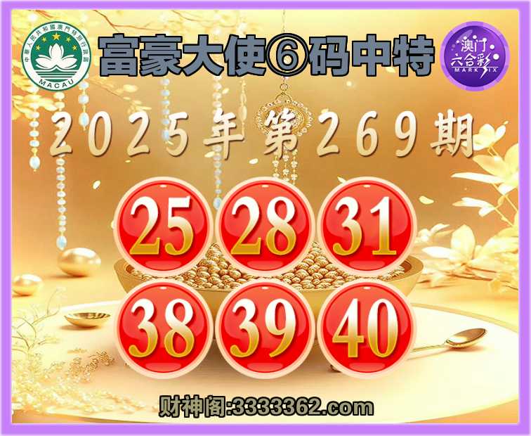 269期:『富豪大使』 ✂️⑥码中特✂️【25.28.31.38.39.40】开:31