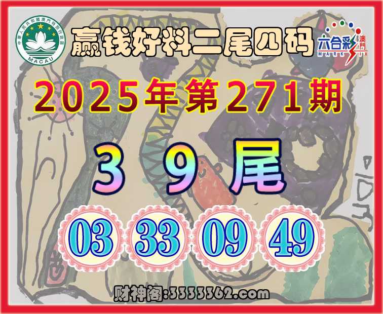 271期:【赢钱好料】 🏆二尾四码🏆【39尾主:03.33.09.49】开:00准