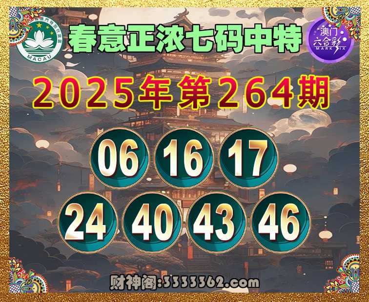 264期:【春意正浓】 🏃‍♀️七码中特🏃‍♀️【06.16.17.24.40.43.46】开:43