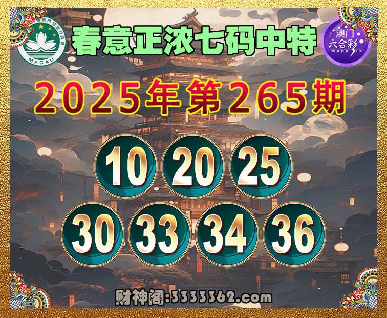265期:【春意正浓】 🏃‍♀️七码中特🏃‍♀️【10.20.25.30.33.34.36】开:10