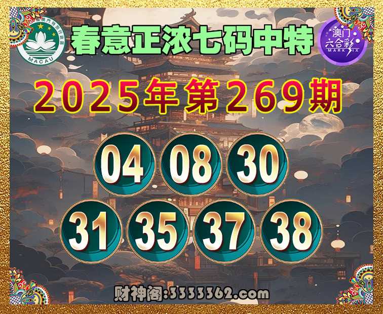 269期:【春意正浓】 🏃‍♀️七码中特🏃‍♀️【04.08.30.31.35.37.38】开:31