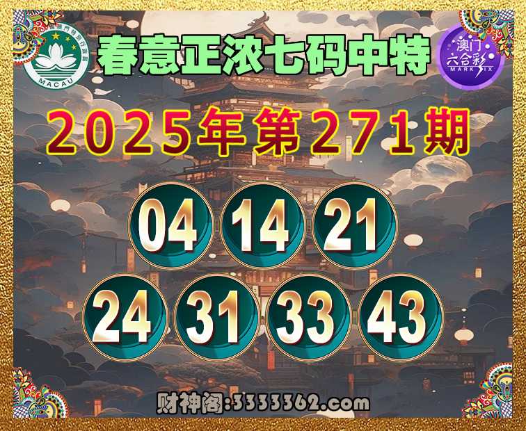 271期:【春意正浓】 🏃‍♀️七码中特🏃‍♀️【04.14.21.24.31.33.43】开:00准