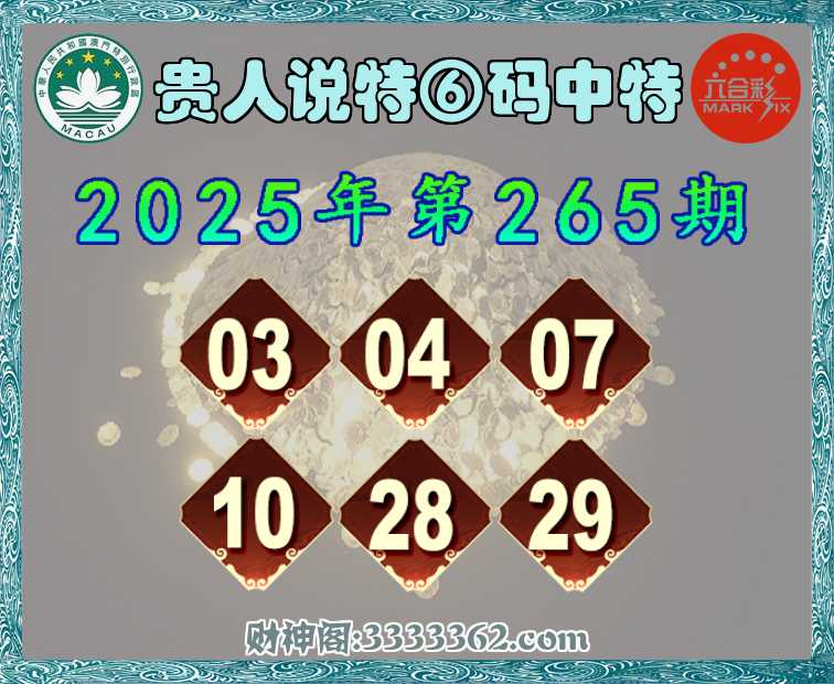 265期:『贵人说特』 🍟⑥码中特🍟【03.04.07.10.28.29】开:10