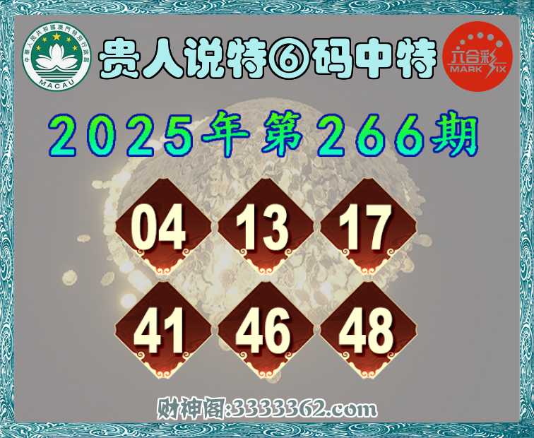 266期:『贵人说特』 🍟⑥码中特🍟【04.13.17.41.46.48】开:41