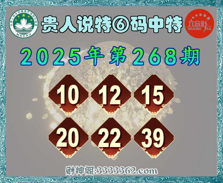 268期:『贵人说特』 🍟⑥码中特🍟【10.12.15.20.22.39】开:10