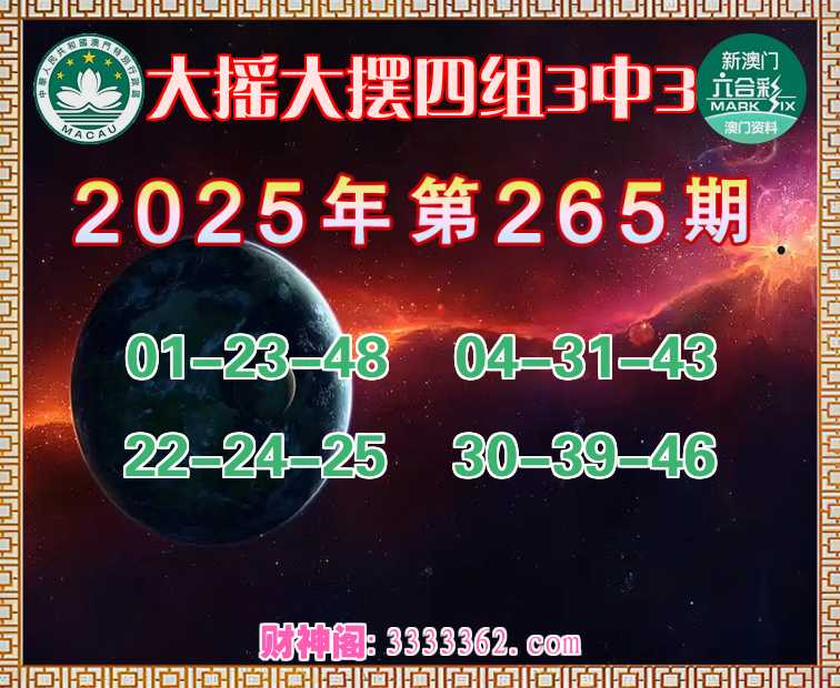 265期:【大摇大摆】 🏵️四组3中3🏵️