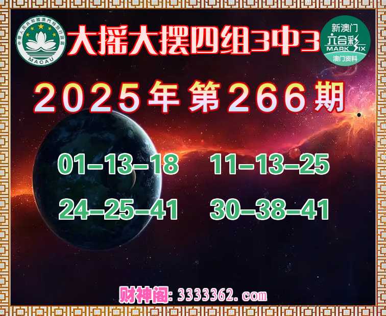 266期:【大摇大摆】 🏵️四组3中3🏵️