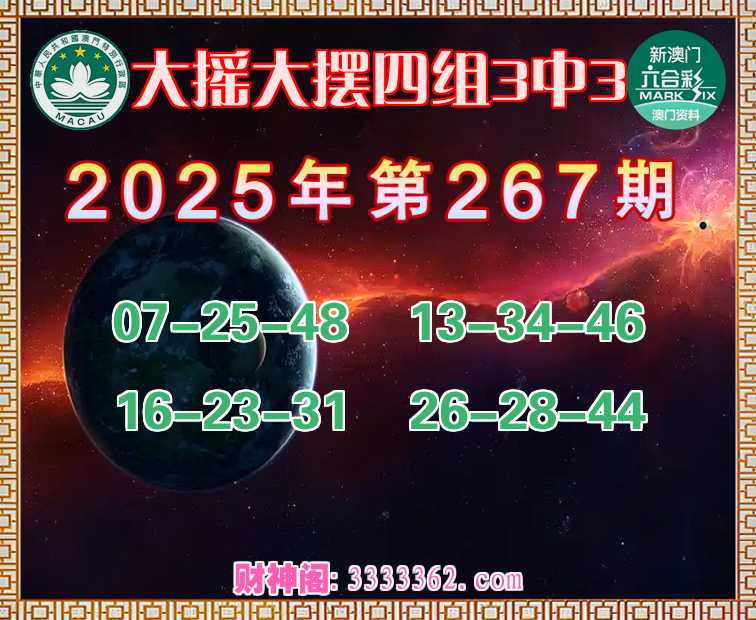267期:【大摇大摆】 🏵️四组3中3🏵️