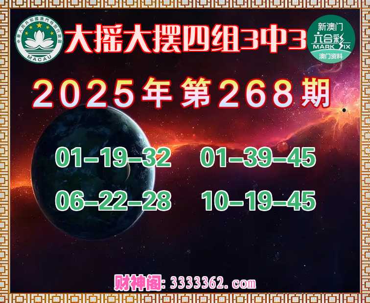 268期:【大摇大摆】 🏵️四组3中3🏵️