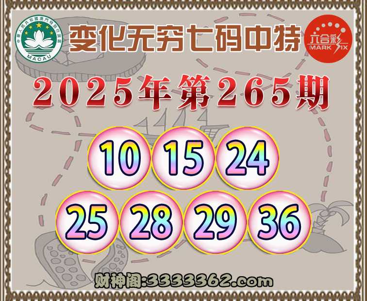 265期:〖变化无穷〗 ☝️七码中特☝️【10.15.24.25.28.29.36】开:10