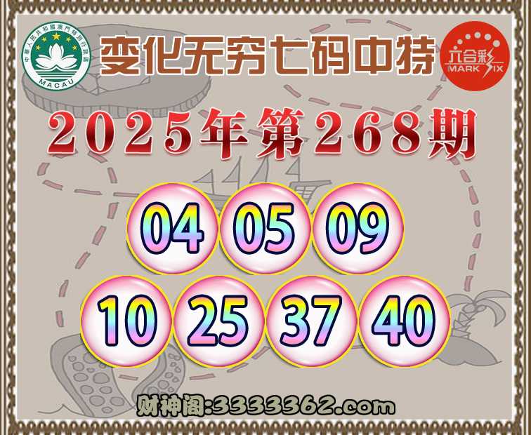 268期:〖变化无穷〗 ☝️七码中特☝️【04.05.09.10.25.37.40】开:10