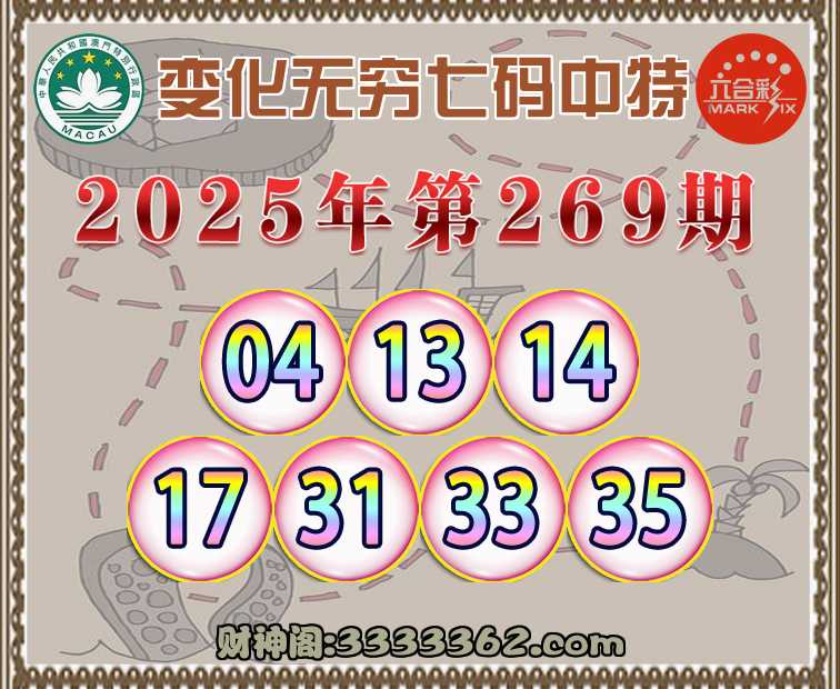 269期:〖变化无穷〗 ☝️七码中特☝️【04.13.14.17.31.33.35】开:31