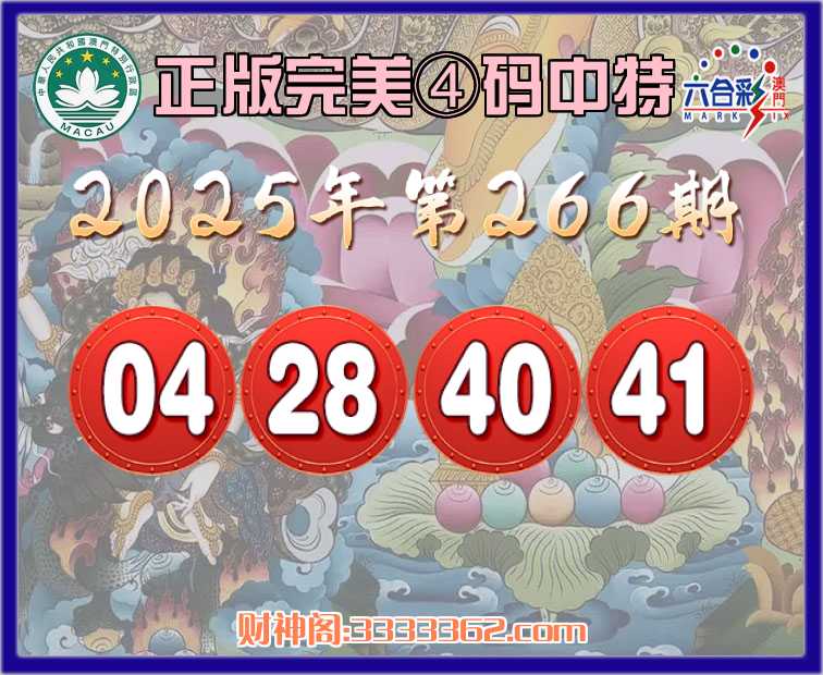 266期:〖正版完美〗 🥼④码中特🥼【04.28.40.41】开:41