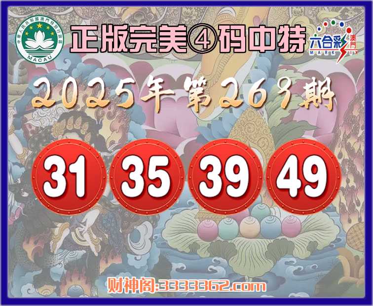 269期:〖正版完美〗 🥼④码中特🥼【31.35.39.49】开:31