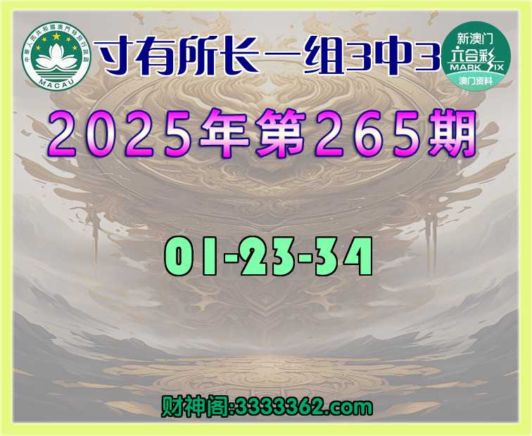 265期:【寸有所长】 ♥️一组3中3♥️【01-23-34