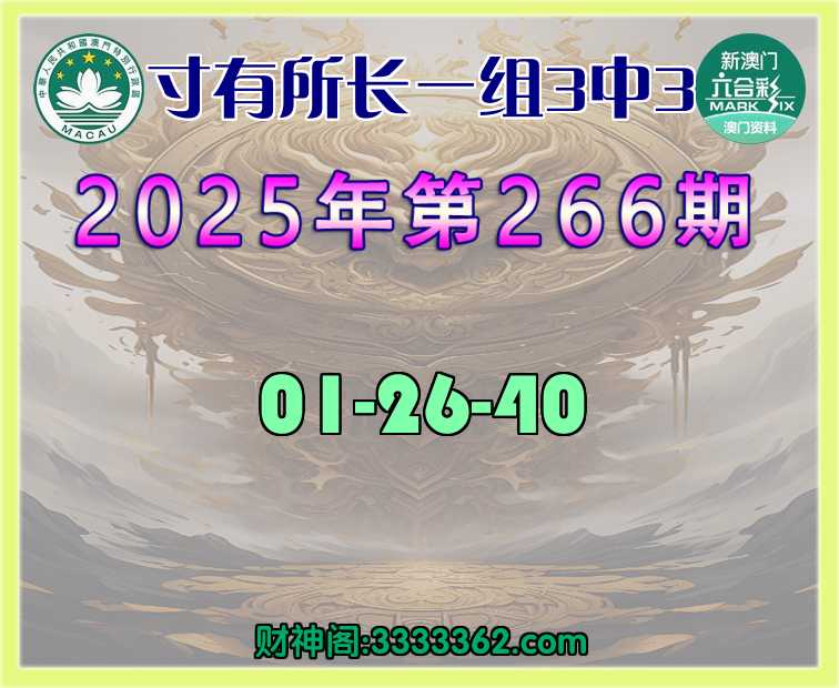 266期:【寸有所长】 ♥️一组3中3♥️【01-26-40