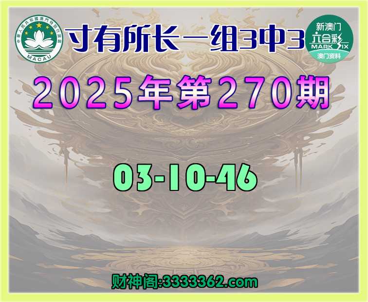 270期:【寸有所长】 ♥️一组3中3♥️【03-10-46