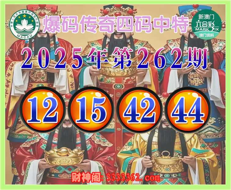 262期:《爆码传奇》 ♦️四码中特♦️【12.15.42.44】开:44