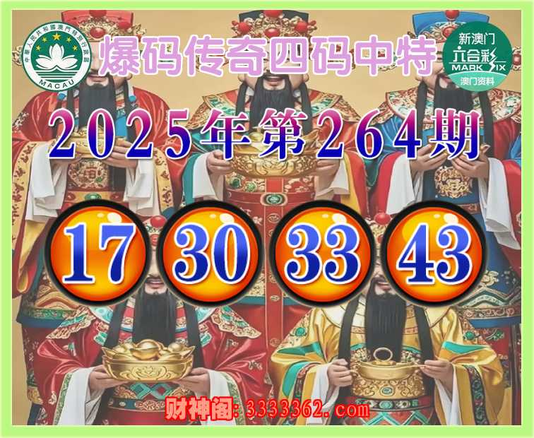 264期:《爆码传奇》 ♦️四码中特♦️【17.30.33.43】开:43