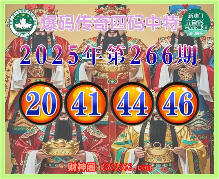 266期:《爆码传奇》 ♦️四码中特♦️【20.41.44.46】开:41
