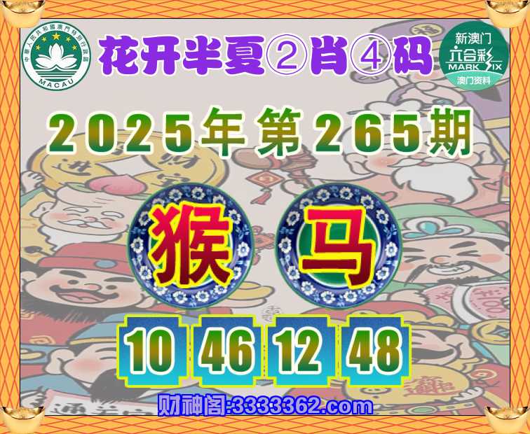 265期:【花开半夏】 🥫②肖④码🥫【马】【10.46.12.48】开:猴10