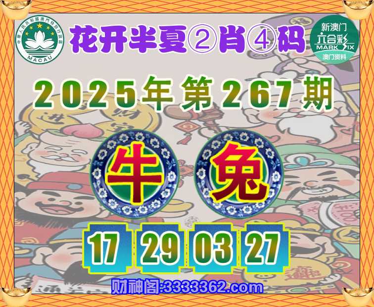 267期:【花开半夏】 🥫②肖④码🥫【兔】【17.29.03.27】开:牛29