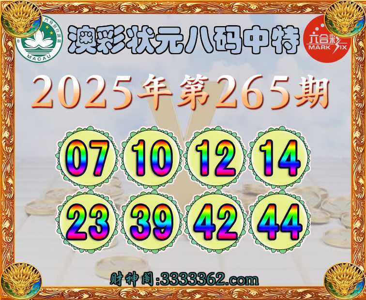 265期:『澳彩状元』 🥖八码中特🥖开:10
