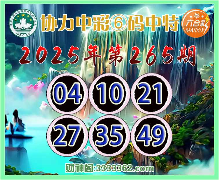 265期:《协力中彩》 ♣️⑥码中特♣️【04.10.21.27.35.49】开:10
