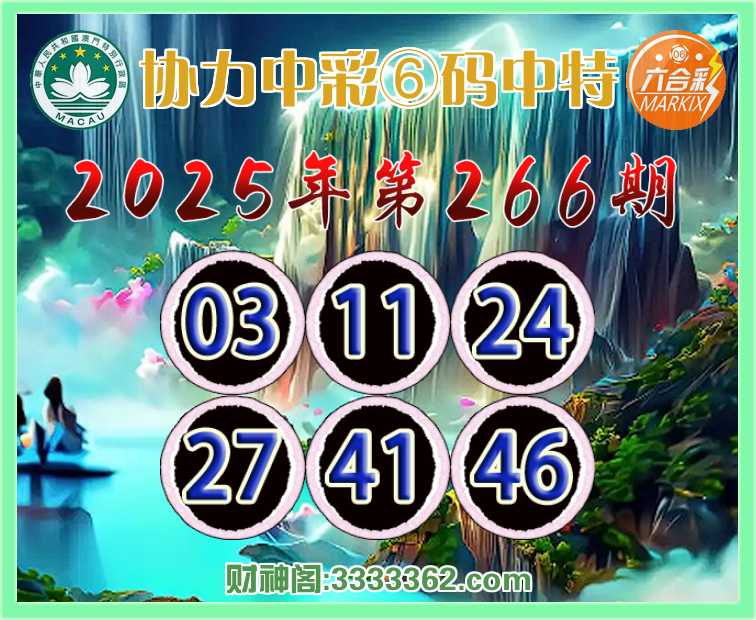 266期:《协力中彩》 ♣️⑥码中特♣️【03.11.24.27.41.46】开:41