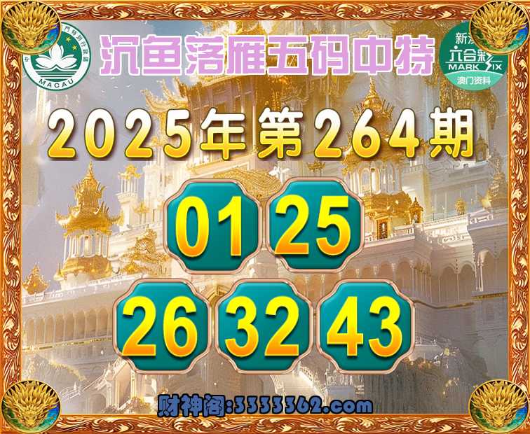 264期:《沉鱼落雁》 🏄‍♀️五码中特🏄‍♀️【01.25.26.32.43】开:43