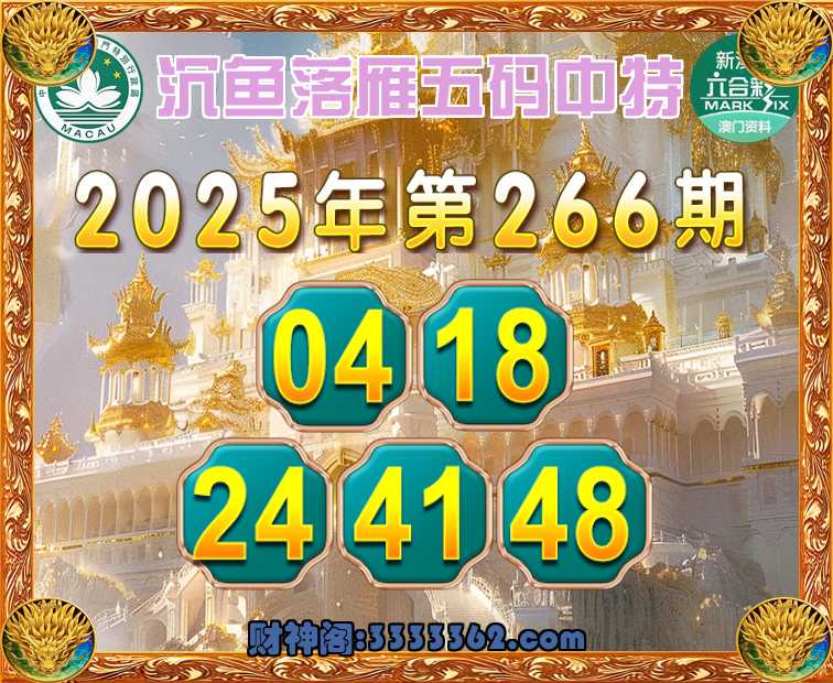 266期:《沉鱼落雁》 🏄‍♀️五码中特🏄‍♀️【04.18.24.41.48】开:41