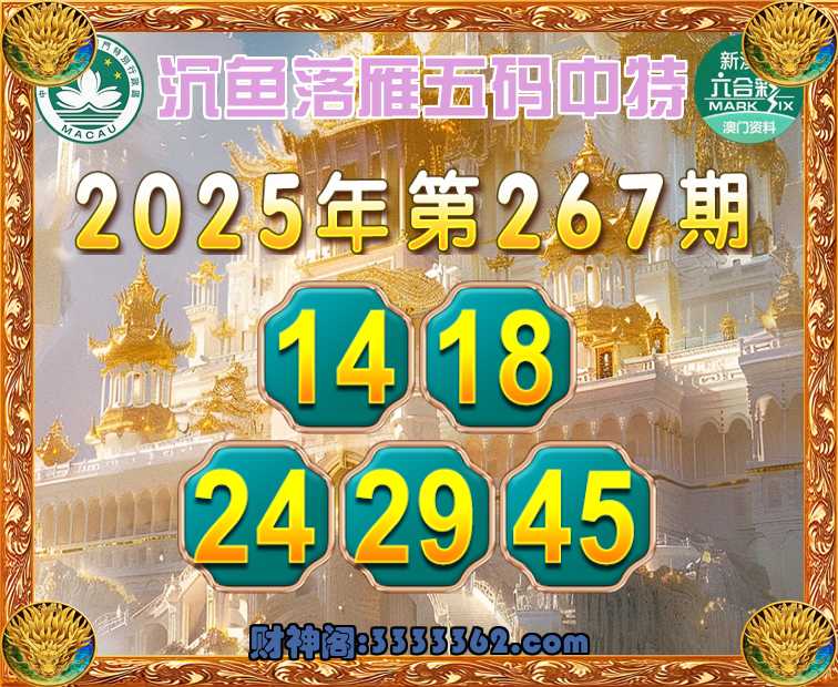 267期:《沉鱼落雁》 🏄‍♀️五码中特🏄‍♀️【14.18.24.29.45】开:29