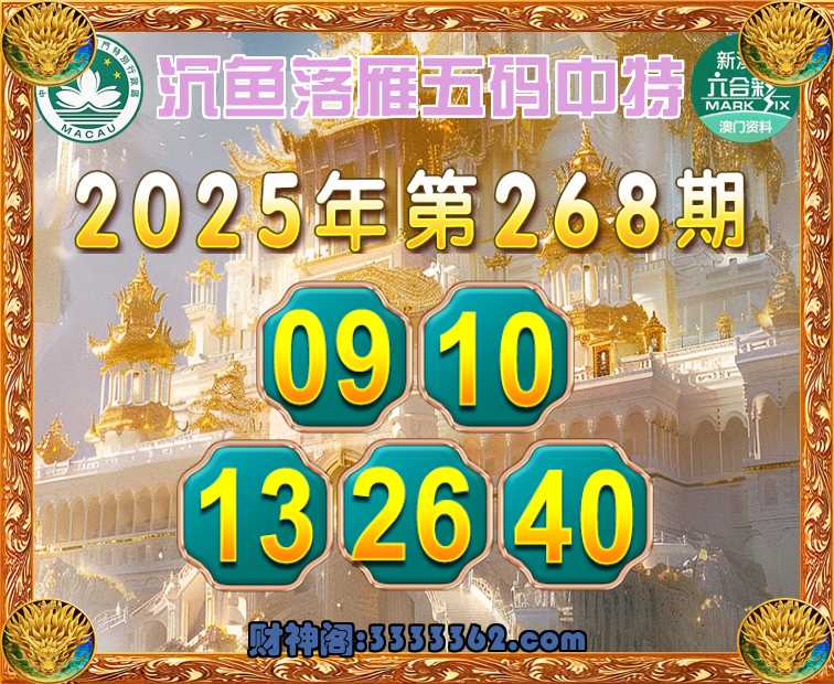 268期:《沉鱼落雁》 🏄‍♀️五码中特🏄‍♀️【09.10.13.26.40】开:10