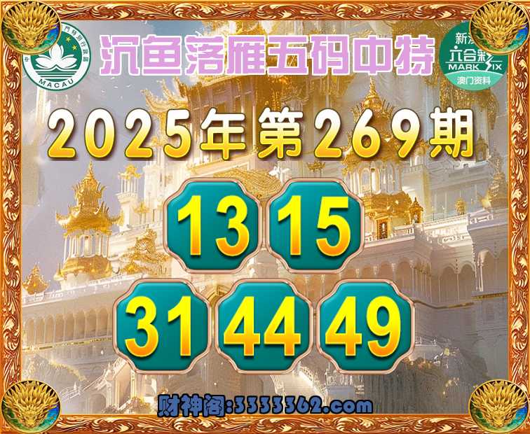 269期:《沉鱼落雁》 🏄‍♀️五码中特🏄‍♀️【13.15.31.44.49】开:31