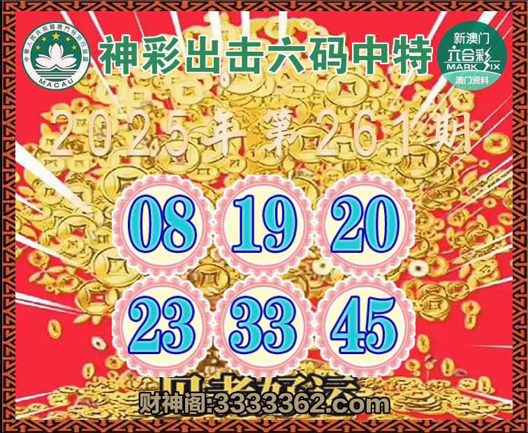 261期:【神彩出击】六码中特⌚【08.19.20.23.33.45】开:33