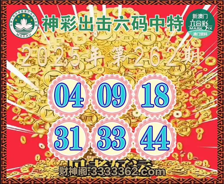 262期:【神彩出击】六码中特⌚【04.09.18.31.33.44】开:44