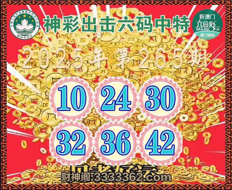 265期:【神彩出击】六码中特⌚【10.24.30.32.36.42】开:10