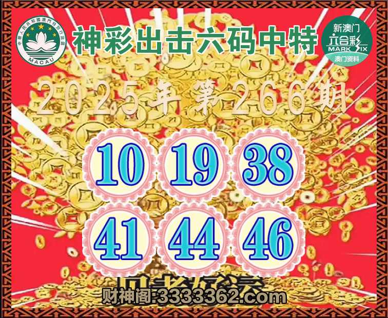 266期:【神彩出击】六码中特⌚【10.19.38.41.44.46】开:41