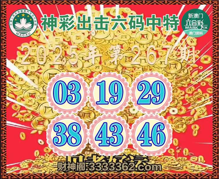 267期:【神彩出击】六码中特⌚【03.19.29.38.43.46】开:29