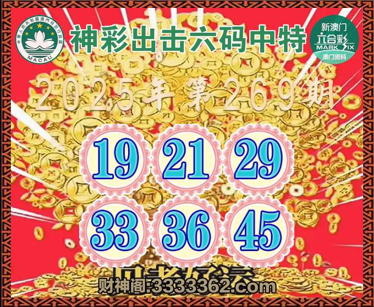 269期:【神彩出击】六码中特⌚【19.21.29.33.36.45】开:31