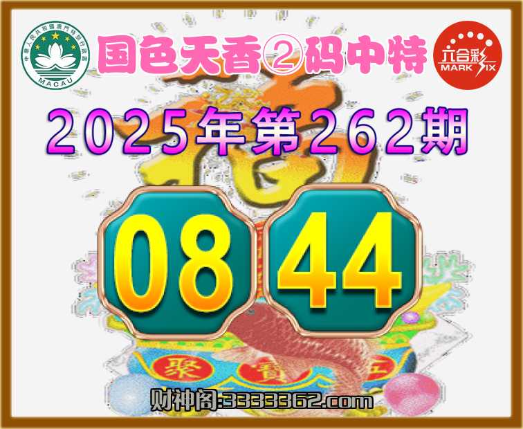 262期:【国色天香】 ☝️②码中特☝️【08.44】开:44